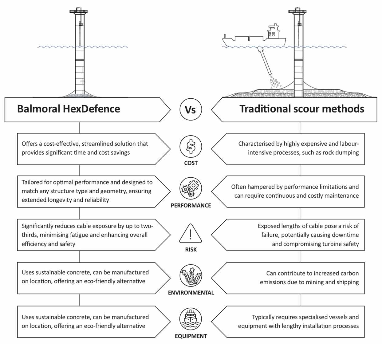 HexDefence offers a sustainable alternative to traditional scour protection methods, minimising environmental impact